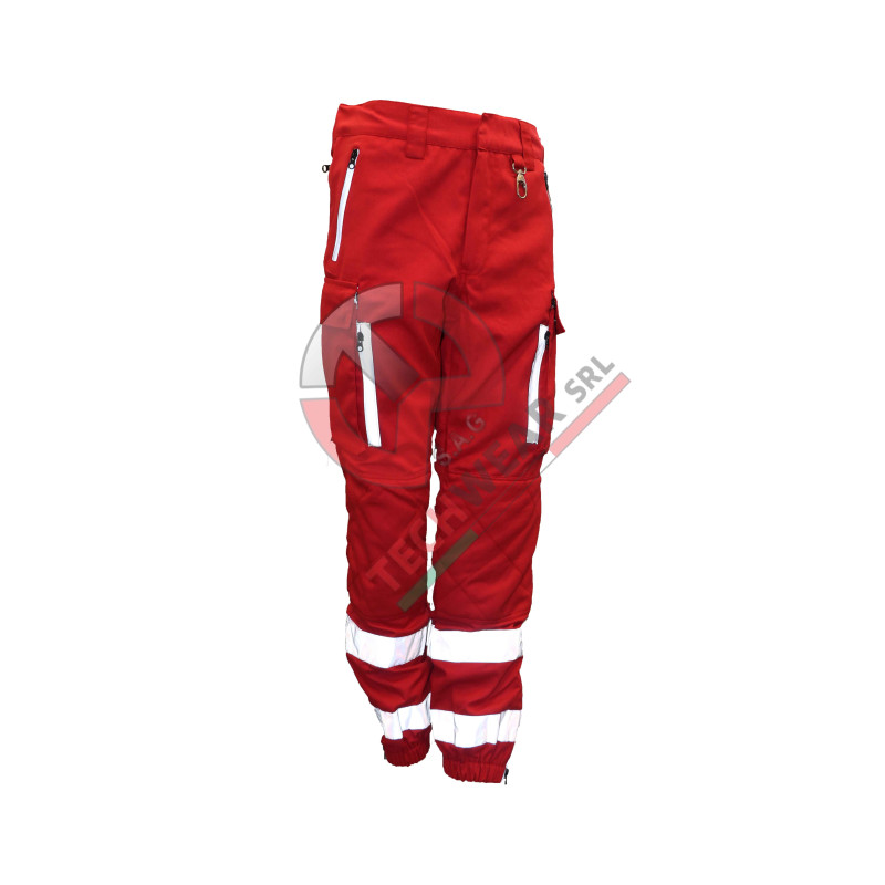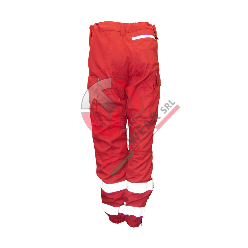 • Fondo gamba regolabile tramite elastico e cerniere laterali per un'aderenza perfetta agli scarponi da soccorso.