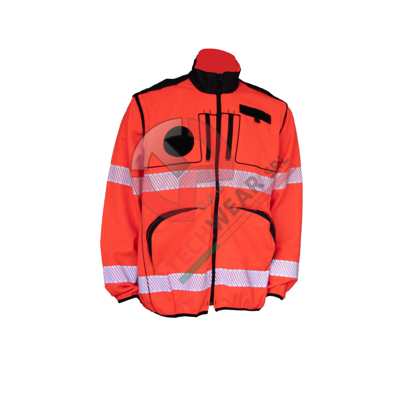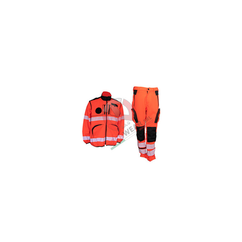 Completo Operativo ANPAS: Divisa tecnica professionale certificata DPI Categoria 2, composta da giacca e pantalone ad alta visibilità in rosso soccorso.